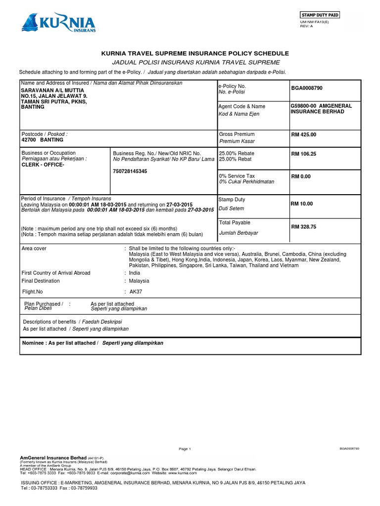 Seremban no.32, beta ria business centre, jalan durian emas 4, off jalan dato' siamang gagp, 70100 seremban, negri sembilan tel. Welcome to kurnia insurans's official facebook page. Level 18 menara worldwide, 198 jalan bukit bintang, 55100 kuala lumpur telephone: We are authorized agents of insurance companies amgeneral insurance berhad (formerly known as kurnia), liberty insurance (formerly known as uni asia), zurich insurance malaysia and zurich takaful insurance (formerly known as maa). Null aig malaysia insurance berhad. Amgeneral insurance berhad (amgeneral) is founded on a combined business of two former entities, amg insurance berhad (amg) and kurnia insurans (malaysia) berhad (kimb) with the acquisition of kimb by ambank group and insurance australia group international pty ltd (iag) in september. Mayban fortis holdings berhad, level 7 tower b, dataran maybank, no. Kurnia / amassurance contact centre: Amgeneral insurance berhad, menara kurnia. 1800 88 3833 (24 hours, daily). To view our branch network or locate our nearest agent. For general, product & road assistance. Not only helping in renewing your car insurance at the.
