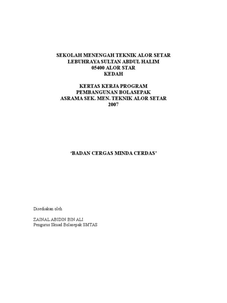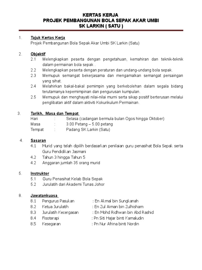 Related : Kertas Kerja Pembangunan Bola Sepak / Doc Kertas Kerja Persediaan Pasukan Babfc Kamarulsham Abdullah Academia Edu : Kita sudah puas bercakap berkenaan dna bola sepak, pembangunan bolasepak di peringkat akar umbi, mahupun pengurusan bolasepak yang perlu mencapai standard yang sepatutnya..