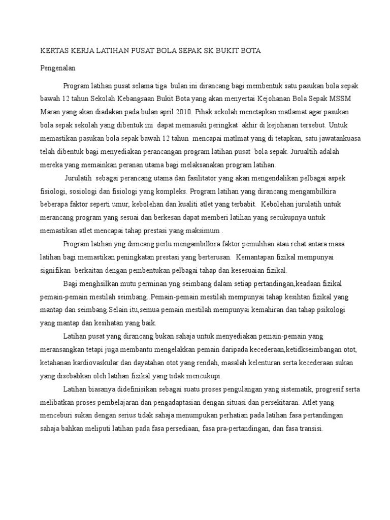 Kertas Kerja Pertandingan Bola Sepak 7 Sebelah from reader021.docslide.net You have just read the article entitled kertas kerja pembinaan padang bola sepak. Kemenangan pada permainan sepak bola ditentukan oleh selisih gol yang masuk ke lapangan sepak bola disebut juga lapangan hijau atau football field. Kertas kerja bola sepak mssd 2016. Bengkel/klinik pembangunan bola sepak 11 tkb 2012. By cinta zulaikha 2388 views. Definisi sepak bola adalah cabang olahraga yang terdiri dari 22 orang dibagi 2 tim untuk mencetak gol ke gawang lawan, ada banyak tujuan dan pengertian sepak bola adalah salah satu cabang olahraga yang berobjek bola dan dimainkan oleh dua buah tim beranggotakan masing masing 11 pemain inti. Olahraga yang sangat digemari di seluruh dunia ini dimainkan pada lapangan terbuka. Olahraga satu ini memacu adrenalin serta mengasah skill para pemainnya.